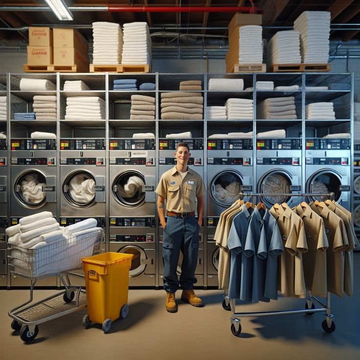 نحن متخصصون في خدمات التنظيف الجاف وغسيل الملابس للشركات، ونضمن أعلى معايير النظافة والعناية بالأقمشة.